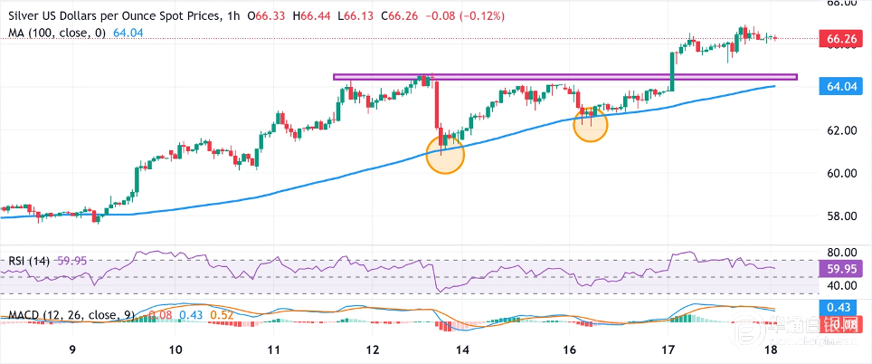 周四亚洲交易时段,白银吸引了一些卖家,目前在65.75-65.70美元区域附近交易,当日跌幅超1%。不过,银价离前一日触及的历史高点不远,整体技术盘似乎仍坚定地倾向于多头。